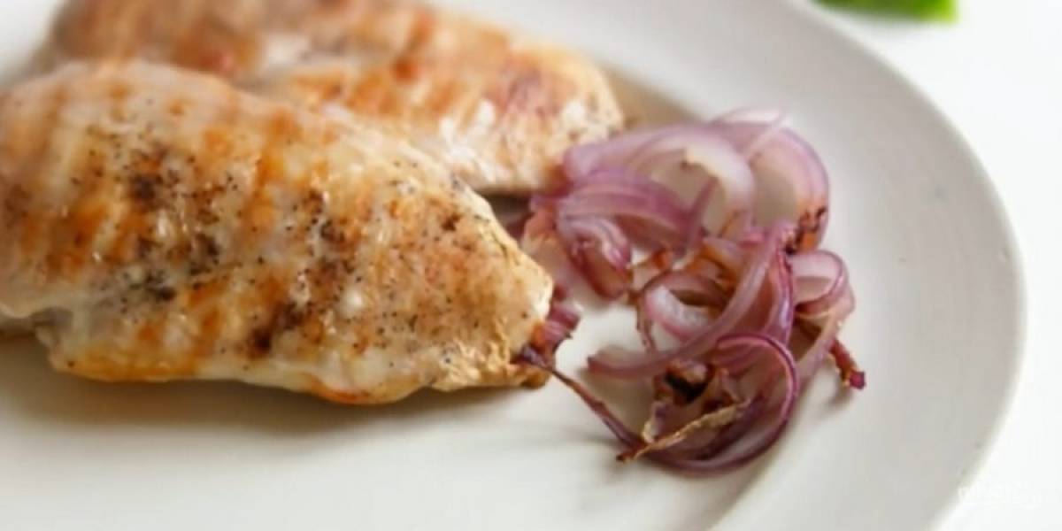2. На разогретый гриль выложите куриное филе, закройте крышку и приготовьте его до золотистого цвета, один раз перевернув в процессе. Аналогично обжарьте на гриле овощи.