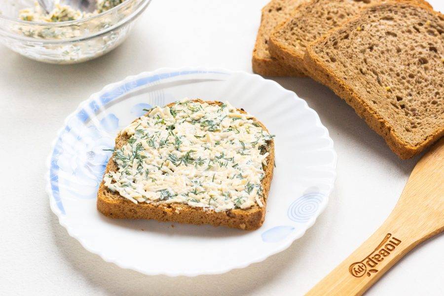 Хлеб намажьте сырной массой.