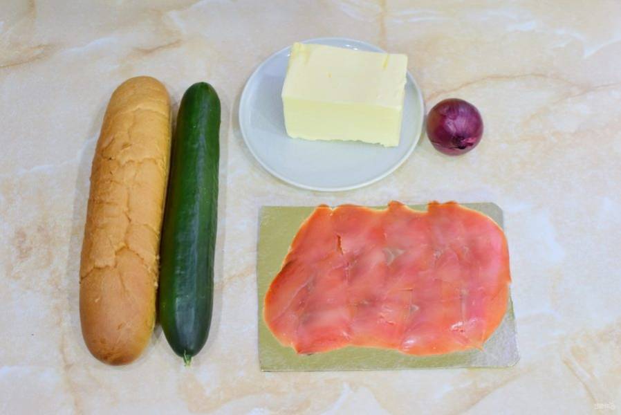Для приготовления бутербродов подготовьте необходимые ингредиенты. Сливочное масло заранее достаньте из холодильника, чтобы оно стало мягкое, так его удобнее будет намазывать на хлеб.