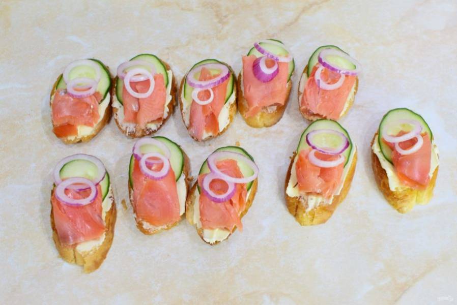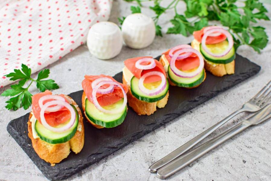 Готовые бутерброды с соленой горбушей можно сразу подавать к столу.