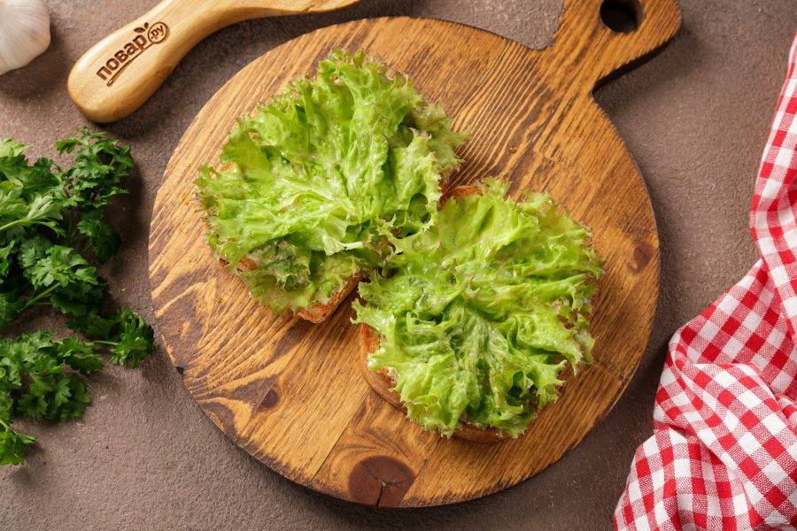 Накройте хлеб листиком салата.