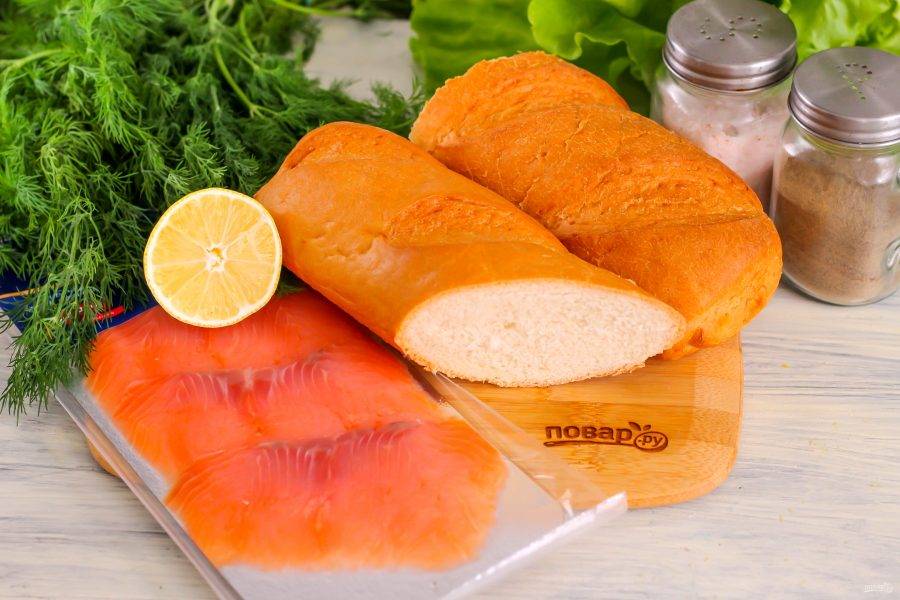 Подготовьте указанные ингредиенты. Слабосоленую красную рыбу приобретите в супермаркете или приготовьте сами в домашних условиях по одному из рецептов на сайте.