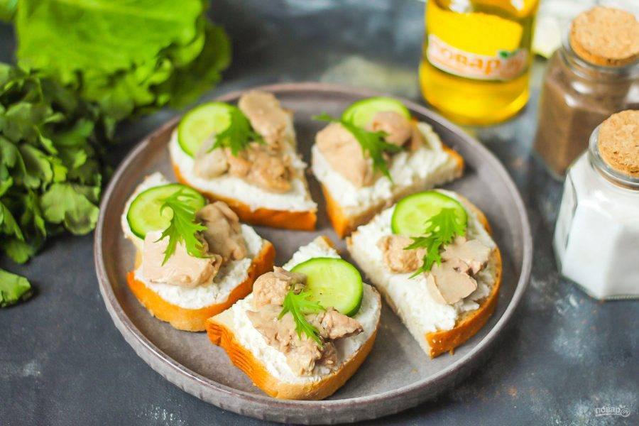 Подайте бутерброды с печенью трески и творожным сыром к столу сразу же после приготовления. Приятного аппетита!