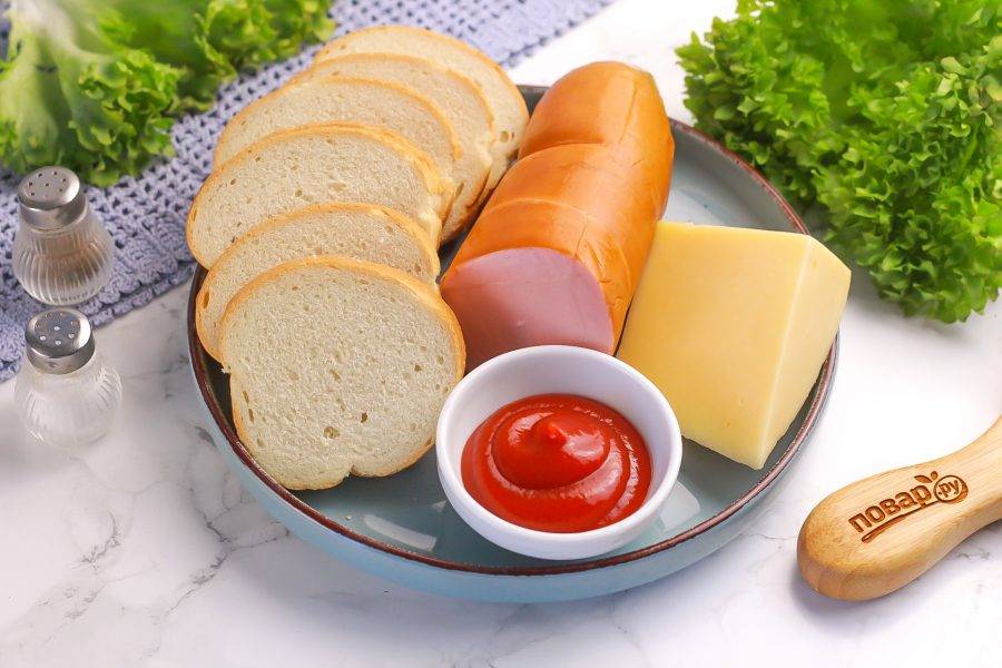 Подготовьте указанные ингредиенты. Колбасу используйте любого сорта или замените ее отварным либо запеченным мясом, паштетом и т.д.