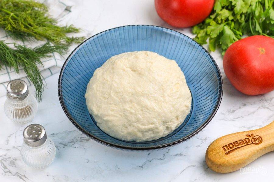 Подпылите рабочую поверхность мукой и раскатайте тесто в округлый пласт. Смажьте противень маслом или используйте силиконовый коврик. Перенесите тесто на противень и смажьте его кетчупом. Заверните бортики и слегка прижмите.