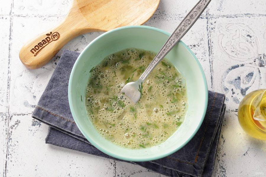 Перемешайте, чтобы белок и желток соединились между собой. Лучше всего это сделать вилкой.