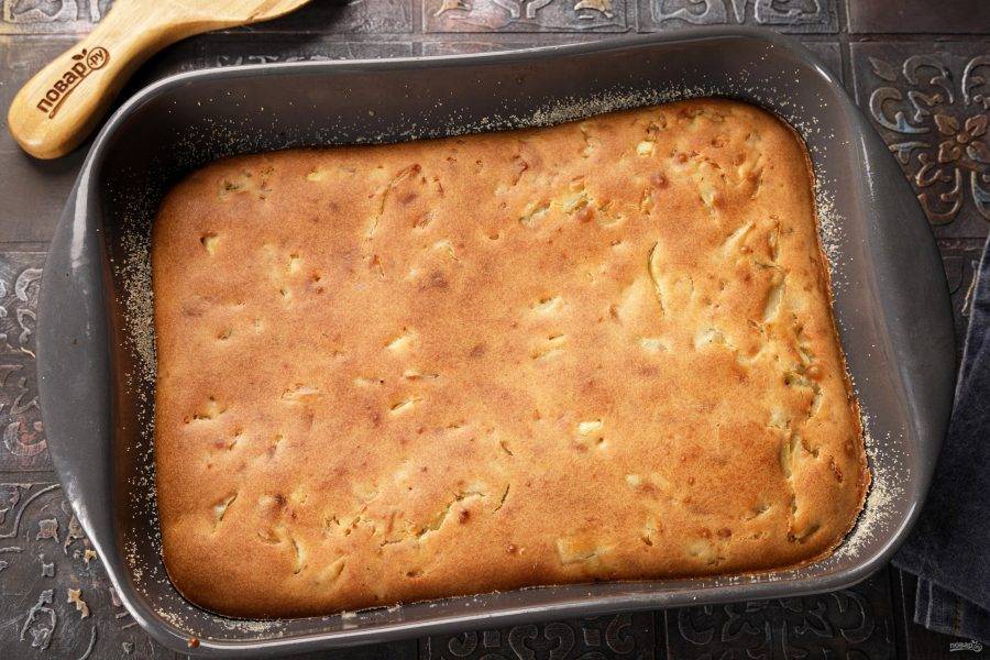 Затем сверху залейте остатки теста, осторожно распределите его, чтобы вся поверхность пирога была покрыта. Мягкое тесто пропитает вкусную начинку, соединив все компоненты между собой. Форму с тестом поставьте в разогретую до 180 градусов духовку и выпекайте 30-40 минут до румяной корочки. Готовность заливного пирога можно проверить, проколов его в центре деревянной шпажкой — она должна остаться сухой и чистой.
