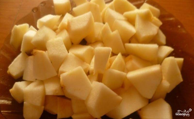 Очистите яблоки от кожуры. Нарежьте их мелкими кубиками.