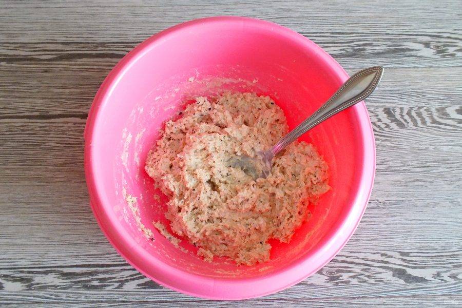Перемешайте ложкой. Тесто будет густым, вязким. Оставьте при комнатной температуре на 15 минут.