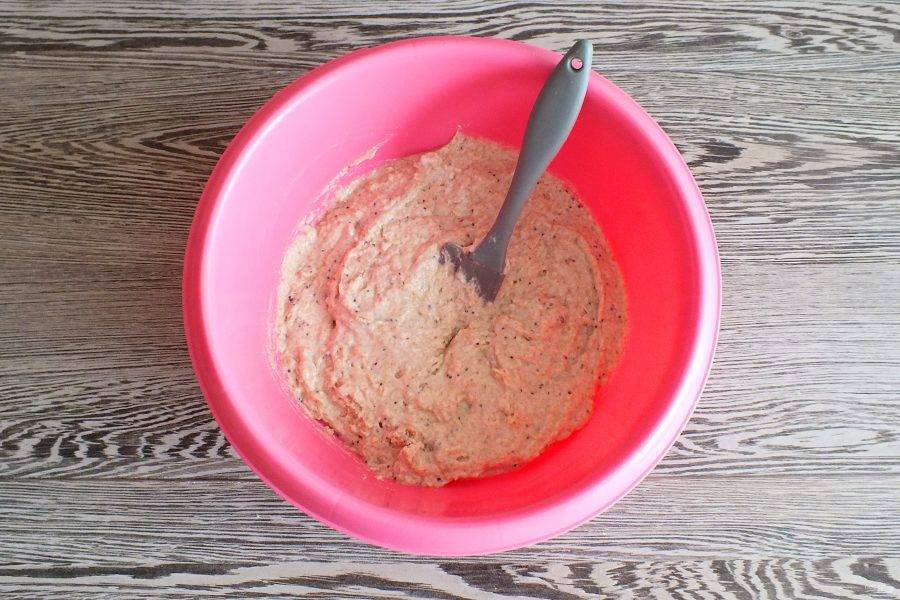 Чашу мультиварки смажьте сливочным маслом. Выложите тесто, разровняйте лопаткой. Выставите режим "Выпечка" на 45 минут.