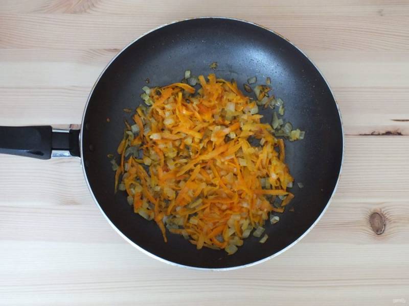 Поджарьте овощи на малом огне, в небольшом количестве растительного масла до мягкого состояния.
