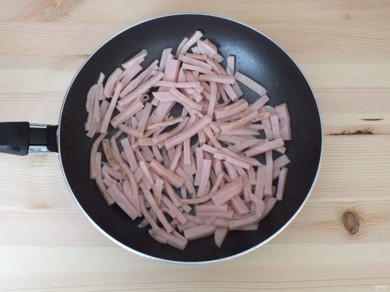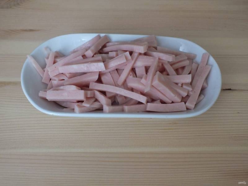 Ветчину нарежьте соломкой.