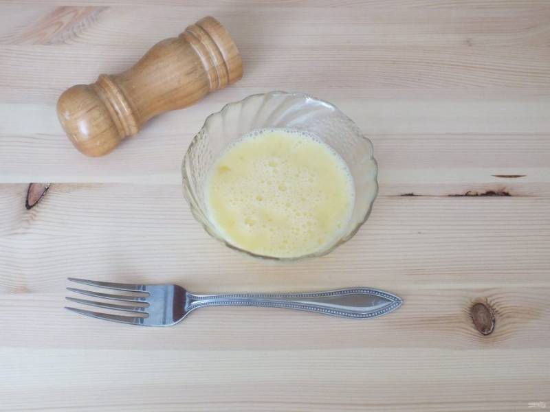 В миске соедините яйца с солью и слегка взбейте вилкой.