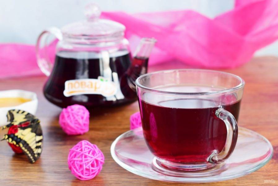 Чай с гибискусом. 1 ст. л. сушеного гибискуса залейте 1 л воды, доведите до кипения, сразу снимите с огня. Дайте настояться в течение 15 минут.
