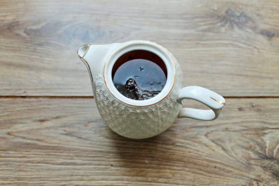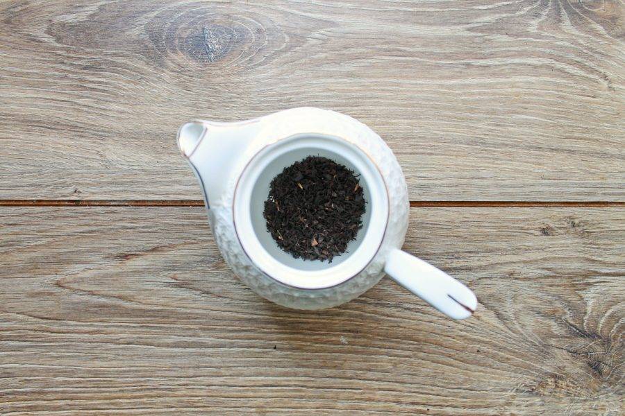 Залейте заварочный чайник кипятком и дайте прогреться в течение 5 минут. Вылейте воду и добавьте заварку.
