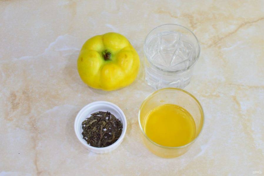 Для приготовления чая подготовьте необходимые ингредиенты. Айву тщательно промойте щеткой в проточной воде.