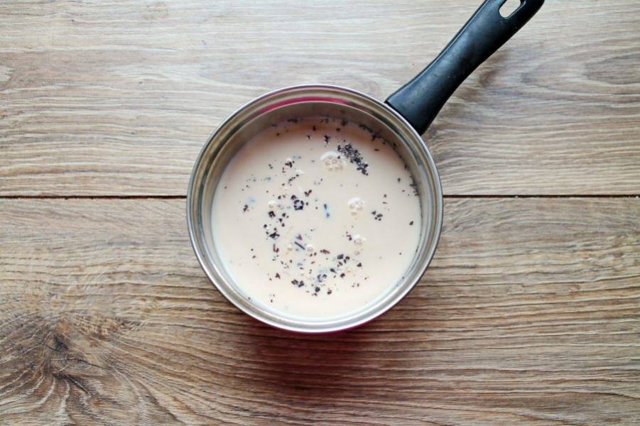 Влейте в чай горячее молоко и варите на медленном огне в течение 5 минут.