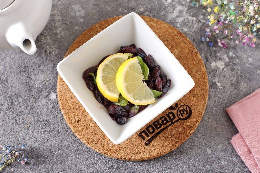 Лимон нарежьте дольками. На данное количество воды и ягод, пару долек будет достаточно.