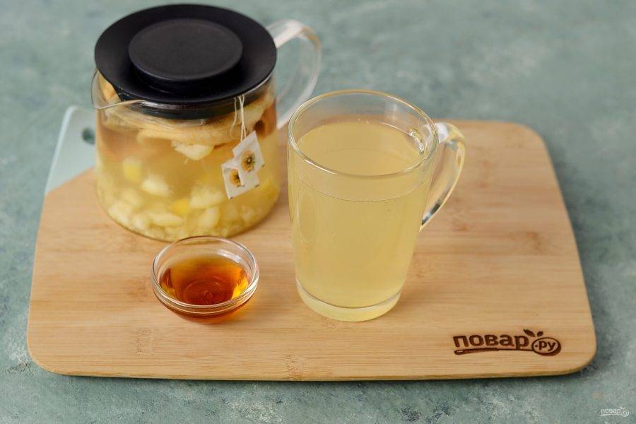 Разлейте чай по кружкам, добавьте сироп топинамбура по вкусу.