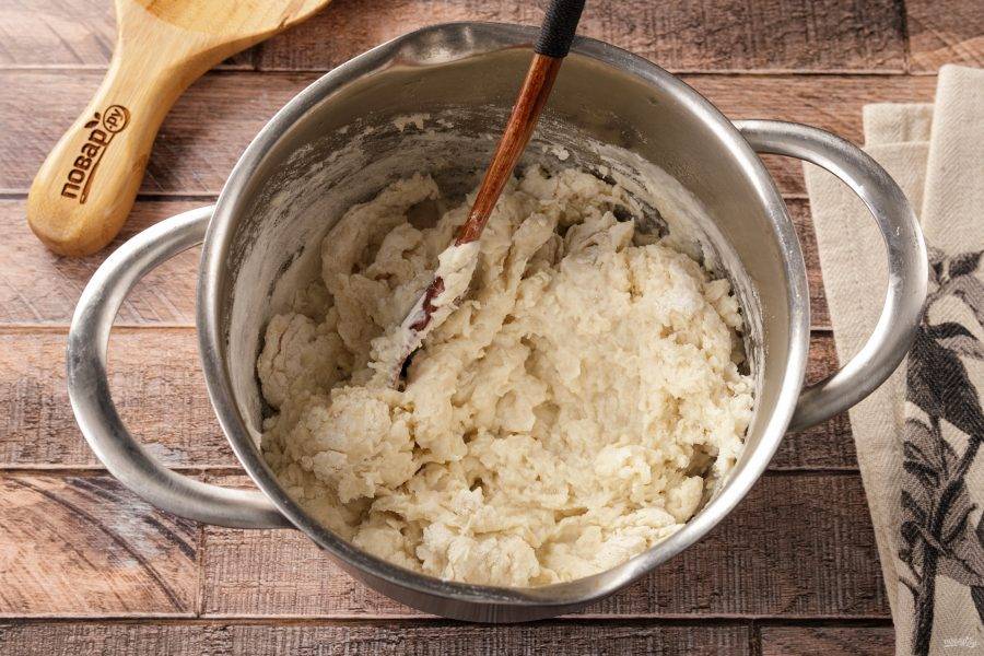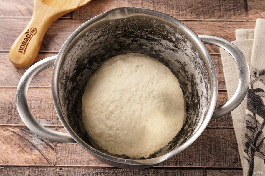 Перемешайте тесто сначала ложкой, а затем продолжите замес руками. Вымешивайте тесто, пока оно не перестанет быть липким. Соберите в шар, накройте полотенцем и дайте полежать 15 минут.