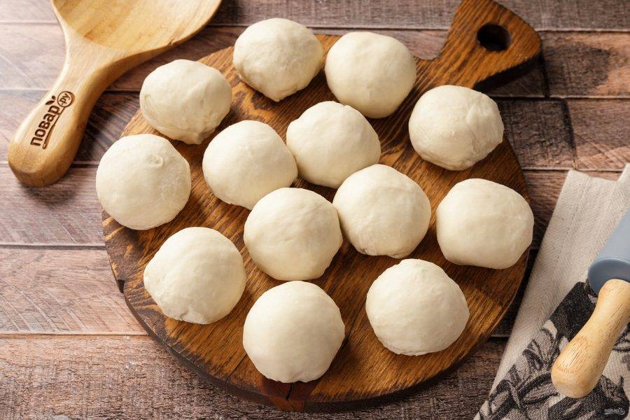 Тесто ещё раз обомните и разделите на 12-14 частей, в зависимости от желаемого размера чебуреков.