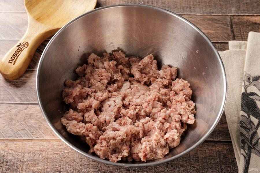 Фарш переложите в глубокую миску.