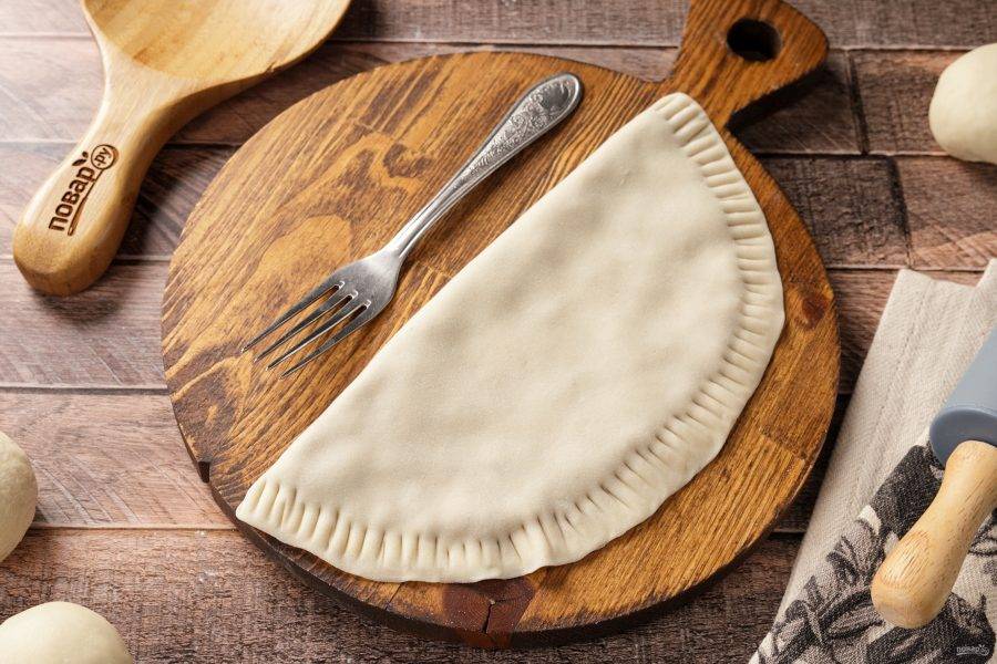 И вилкой скрепите края. Аналогично сформируйте оставшиеся чебуреки.