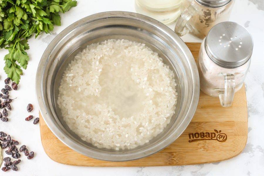 Рис промойте в холодной воде несколько раз, пока вода не будет оставаться прозрачной, необходимо вымыть из крупы весь крахмал.