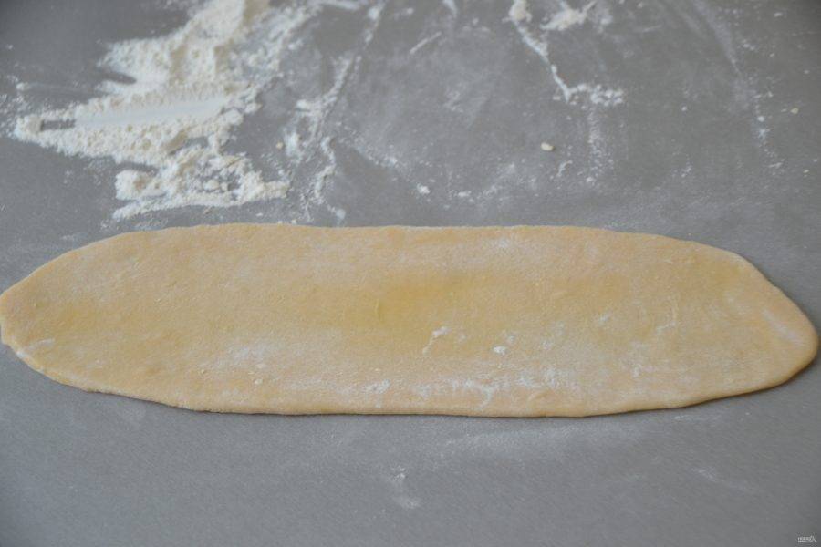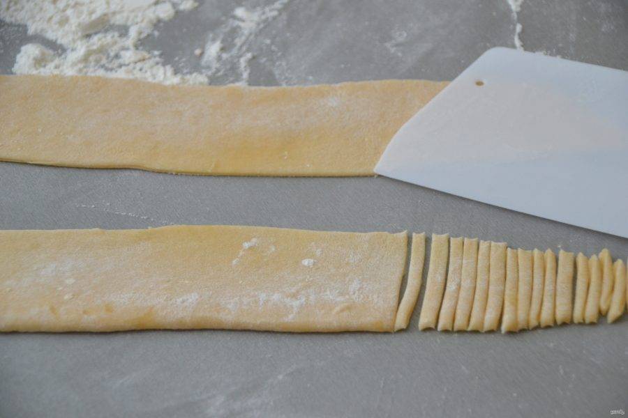 Разрежьте полоски теста на тонкую соломку 1,5 - 2 мм.