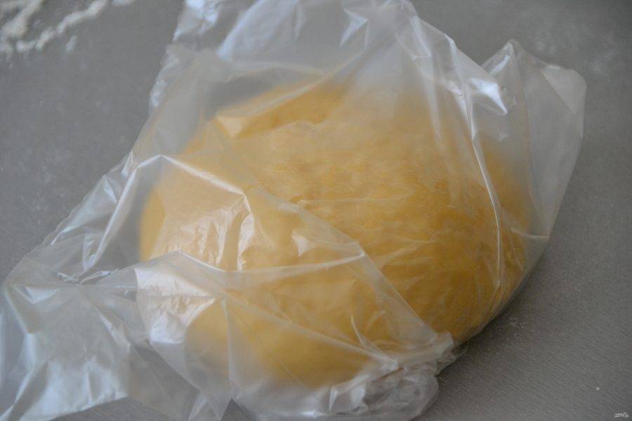 Готовое тесто заверните в пленку и дайте ему настояться в течение 30 минут.