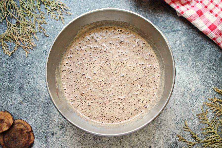 Молоко налейте в сотейник и доведите до кипения, но не кипятите. Черемуховую муку насыпьте в миску и залейте горячим молоком. Все перемешайте и оставьте на 30 минут и полного остывания.