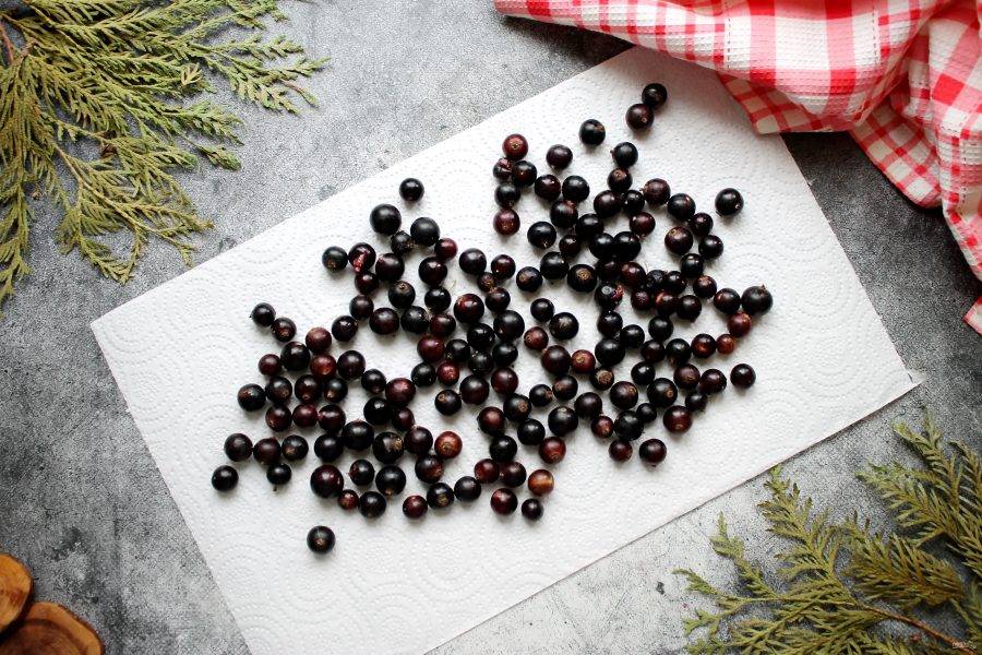 Смородину сполосните и разложите в один слой на тканном или бумажном полотенце. Дайте ягодам обсохнуть.