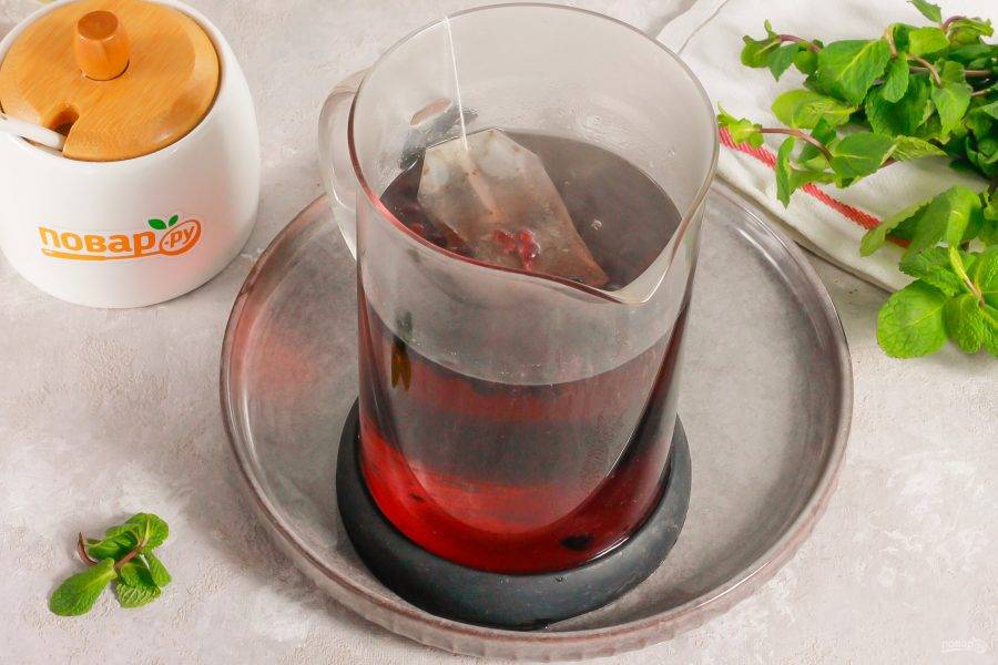 Вскипятите воду в чайнике. Добавьте в заварочный чайник пакетик чая: черного или зеленого. Можно всыпать заварку, если не любите пакетированный чай. Влейте кипяток и накройте емкость крышкой. Оставьте на 10 минут.
