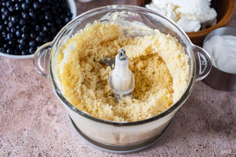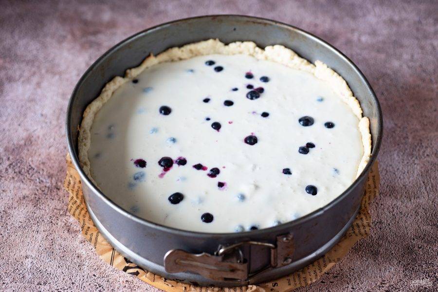 Достаньте из духовки форму с подпеченной основой, выложите обильным слоем чернику.
