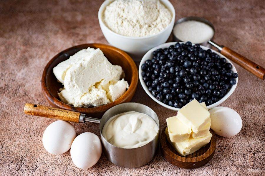 Все ингредиенты выложите на стол. Чернику переберите и промойте.