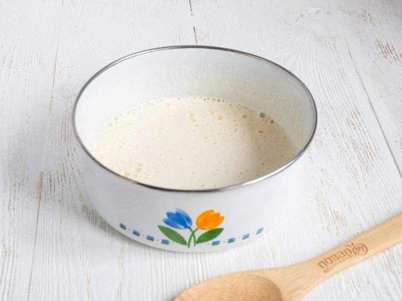 Продолжая взбивать влейте оливковое масло, молоко и добавьте размягченное сливочное масло.