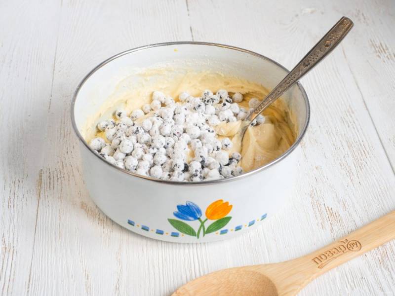 2/3 ягод обваляйте в крахмале и аккуратно вмешайте в тесто.