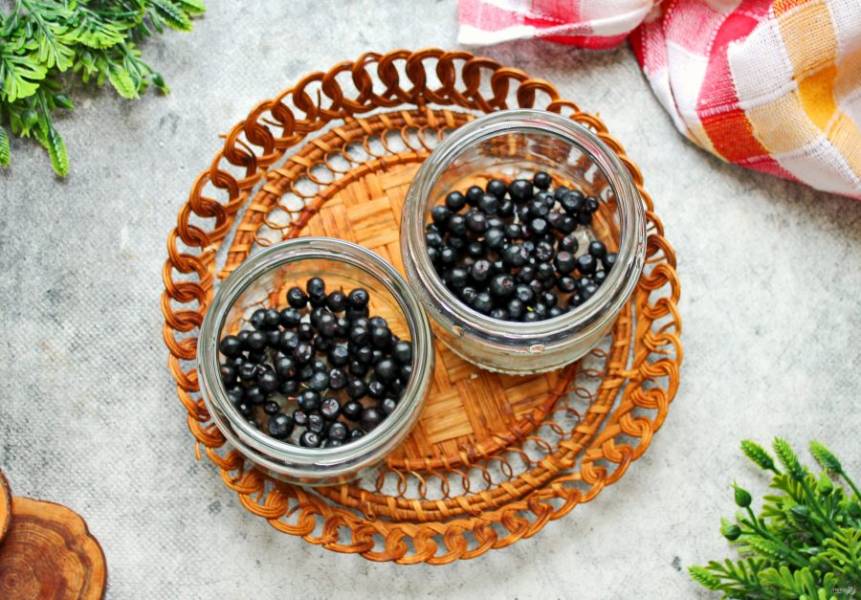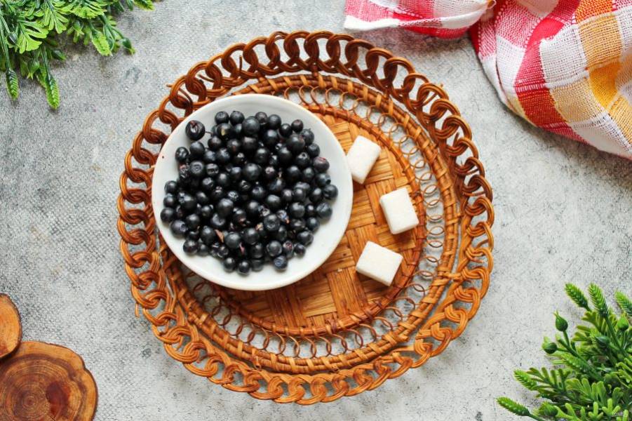 Подготовьте все необходимые ингредиенты для приготовления. Чернику переберите, вымойте и обсушите на полотенце. Банки простерилизуйте любым удобным способом, железные крышки прокипятите в течение 5 минут на среднем огне.