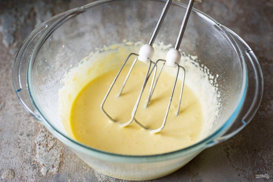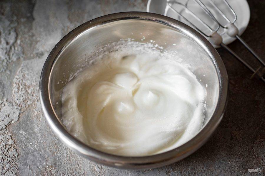 В отдельной сухой миске взбейте миксером белки до устойчивых пиков.