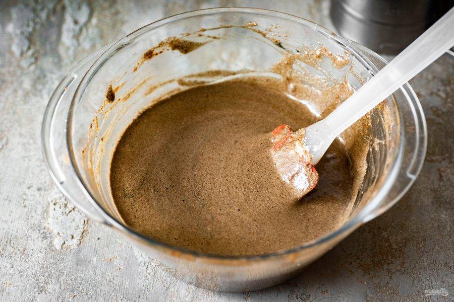 Вмешайте какао, добавьте гелевый краситель.