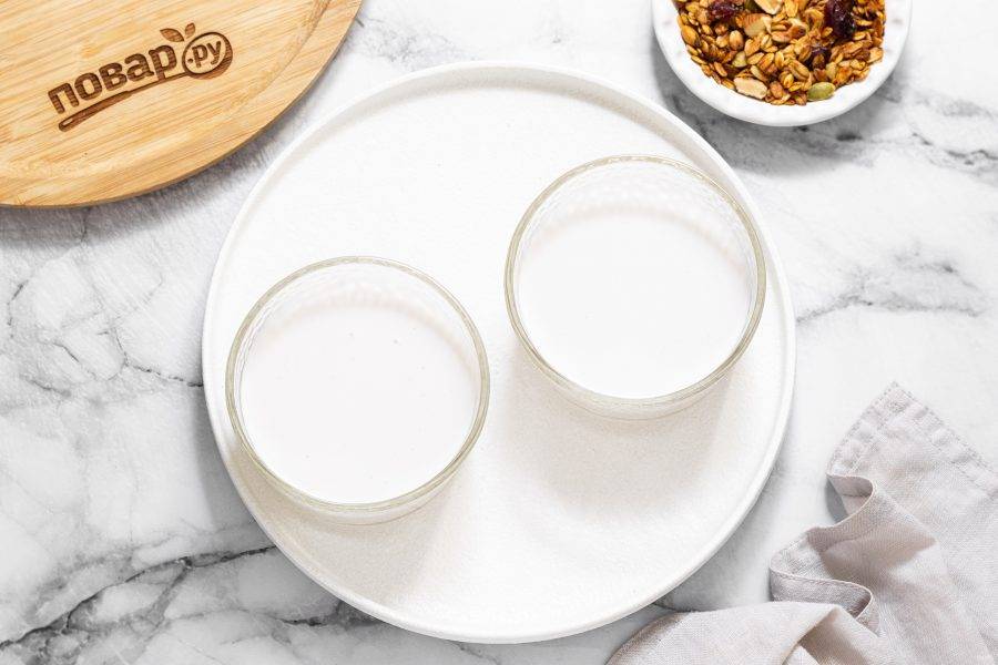 Разлейте кокосовое молоко по баночкам или креманкам, которые будете использовать для пудинга.