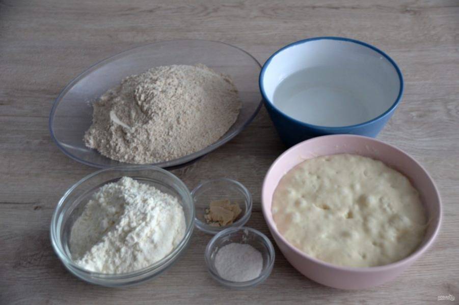 Подготовьте ингредиенты с учетом готовой опары, которую нужно приготовить за 8-10 часов до начала замеса теста.
