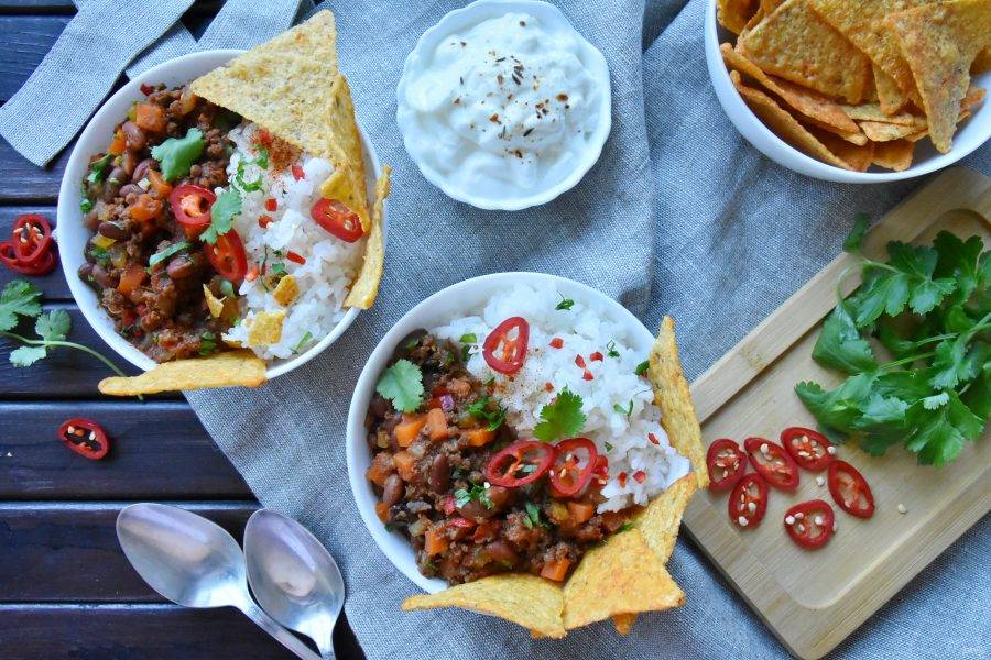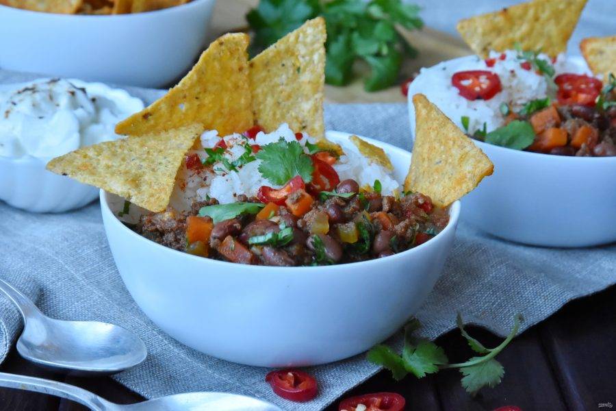 Подавайте чили с чем пожелаете — рисом, картофелем, лепешками, начос.
