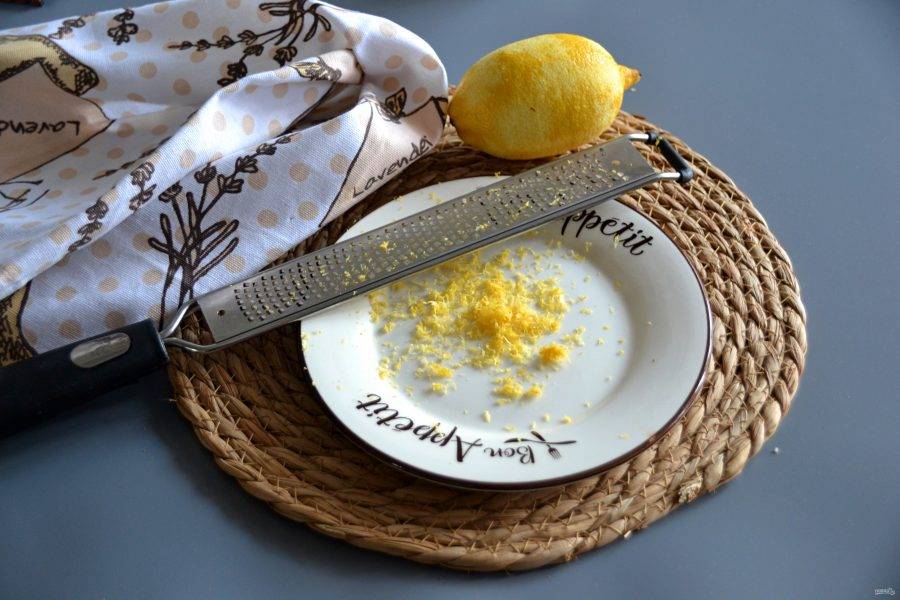 С помощью терки снимите цедру с лимона стараясь снять только желтую часть, не задевая белую часть, иначе чизкейк будет горчить. Добавьте цедру лимона в миску.