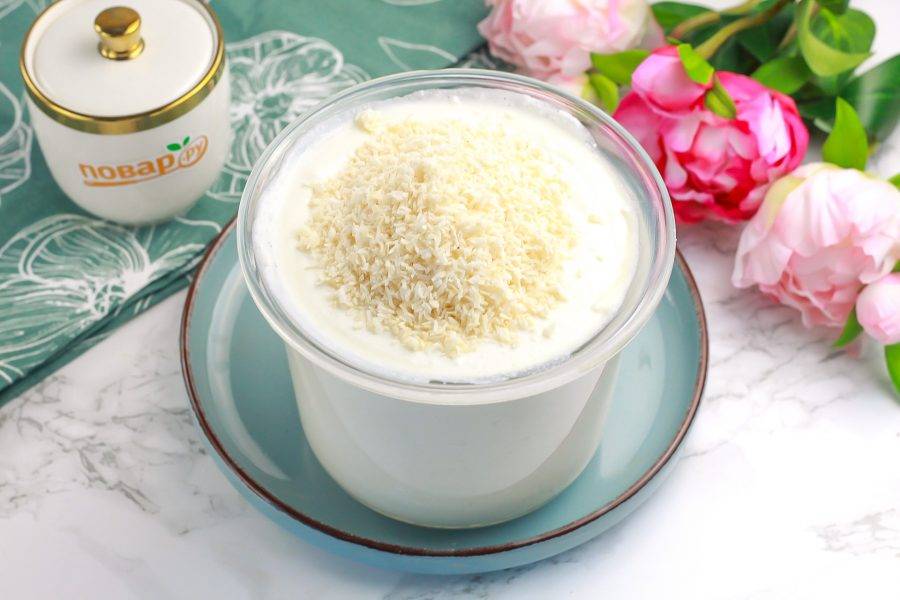 Украсьте приготовленный десерт по вашему вкусу: ягодами, маршмэллоу, шоколадом, орехами и т.д. Теперь его можно подать к столу.