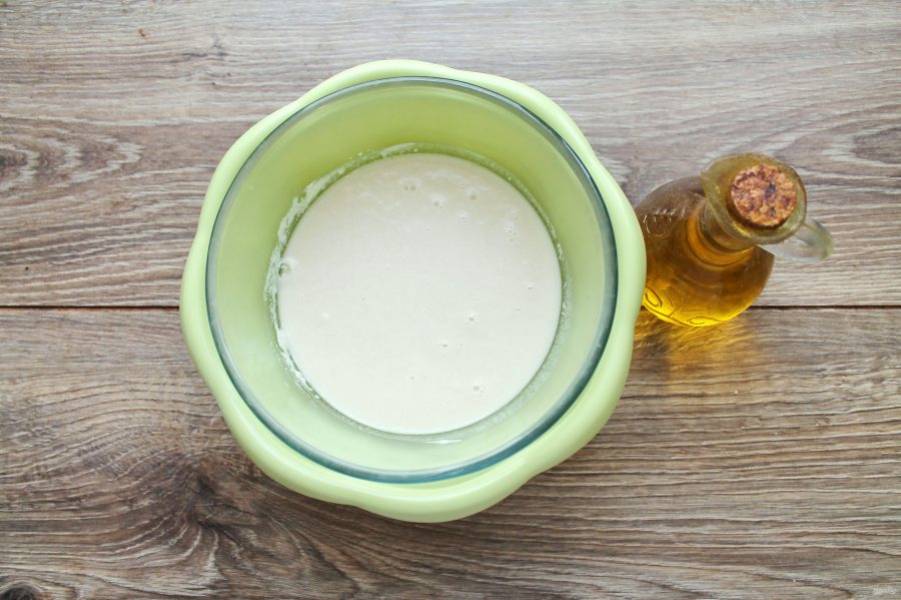Влейте растительное масло, перемешайте, накройте емкость крышкой и оставьте на один час при комнатной температуре.