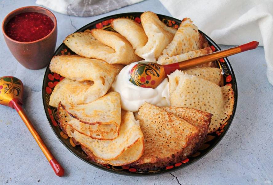 Предлагаю приготовить тонкие блинчики, для которых не нужно ни молоко, ни яйца. Краешки у них получаются хрустящие, а сами блинчики нежными. Берите рецепт на вооружение!