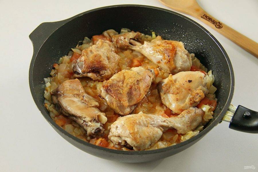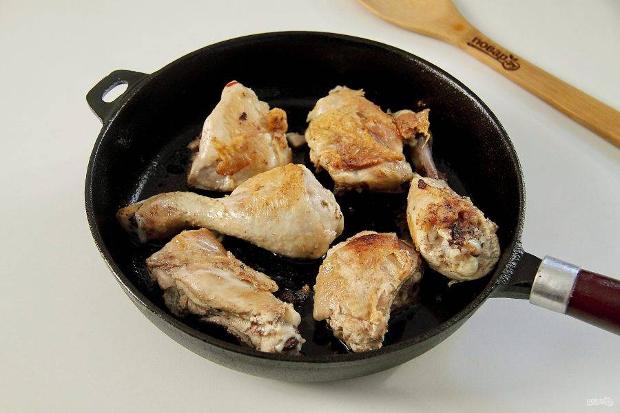 Затем слегка обжарьте курицу со всех сторон на сковороде.