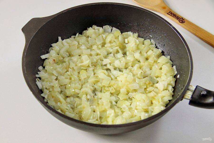 Отдельно обжарьте до мягкости нарезанный кубиками лук.