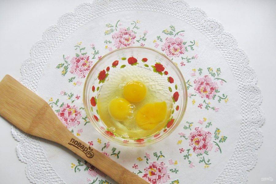В мисочку разбейте яйца.